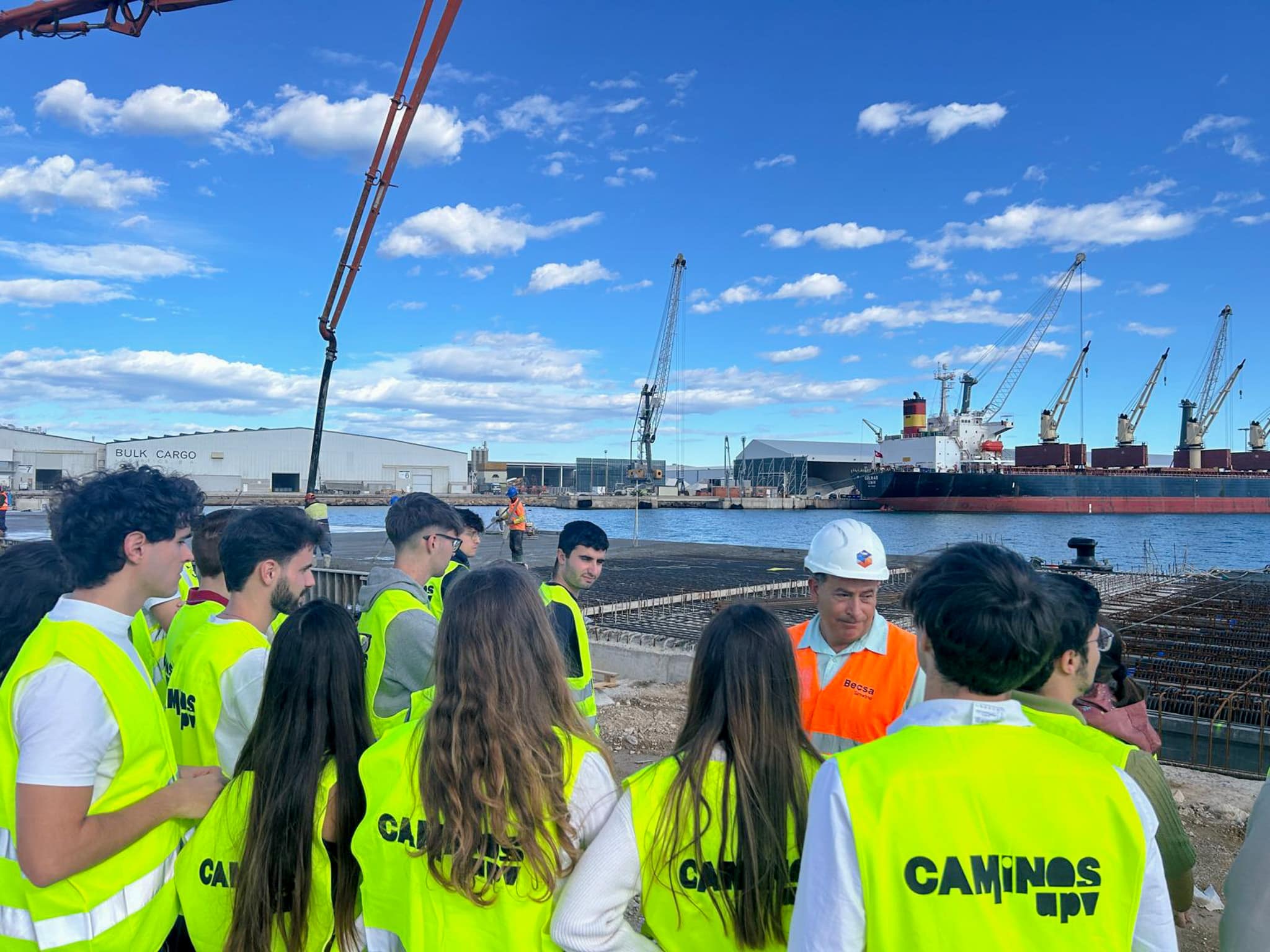 La visita realizada por el alumnado de 1º del Máster de Ingeniería de Caminos, Canales y Puertos de la Universidad Politécnica de Valencia se centró en las dos obras que Becsa está ejecutando para el Puerto de Castellón.